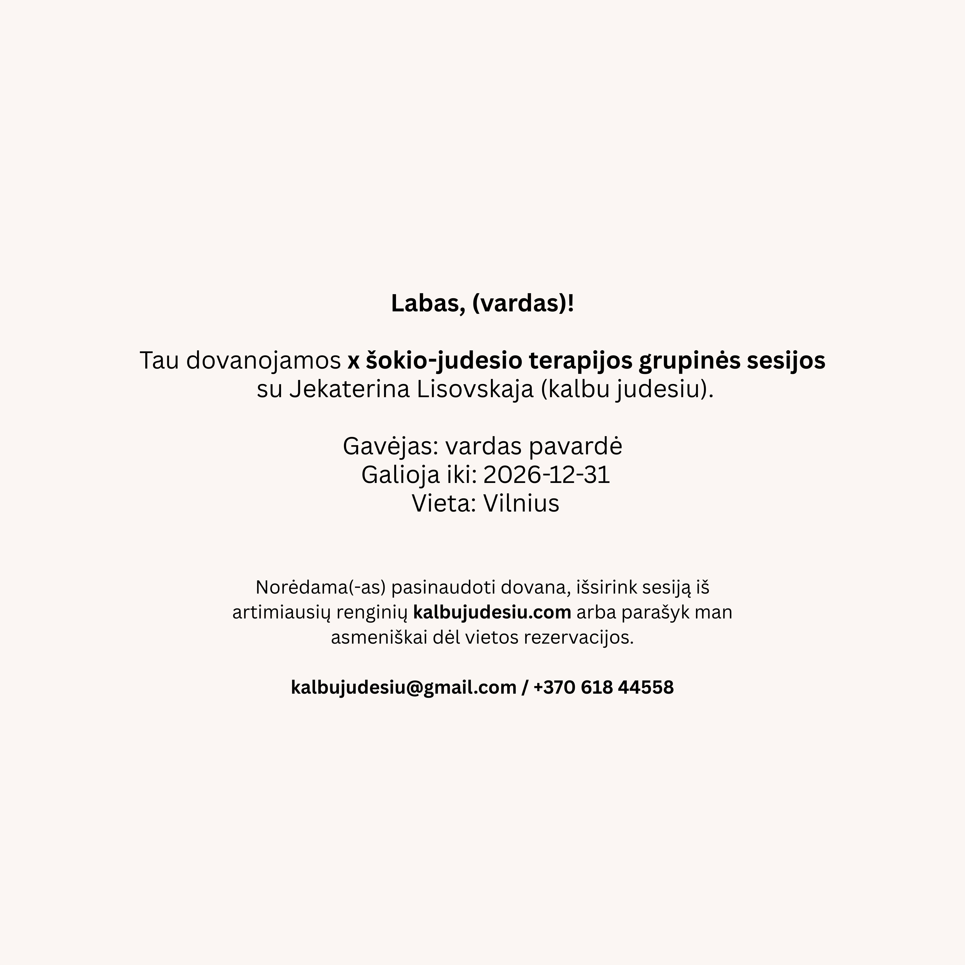 | Rinktis | Grupinė sesija (1 vnt.), Grupinės sesijos (2 vnt.), Grupinės sesijos (3 vnt.), Individuali sesija |
